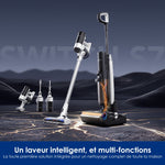 • Passez de l'un à l'autre facilement avec le moteur SwitchPro, pour un nettoyage de toute la maisonPassez du mode laveur de sol au mode aspirateur facilement, vous apportant la solution ultime la plus polyvalente pour nettoyer toute la maison, y compris pour la cuisine et la salle de bain. De nombreux accessoires sont inclus pour les surfaces douces, les recoins et les zones en hauteur.